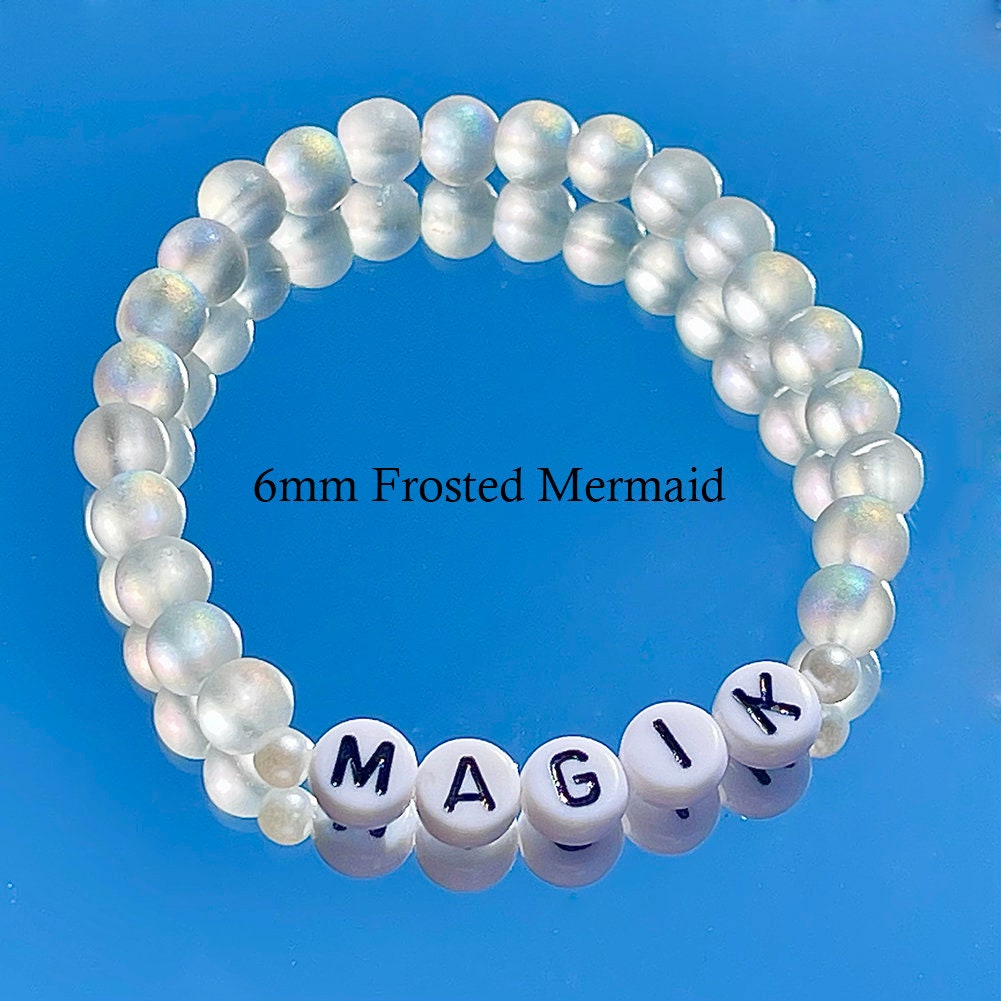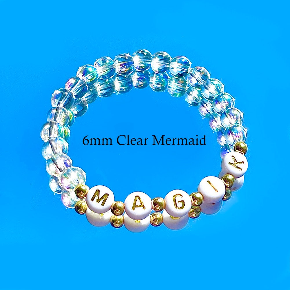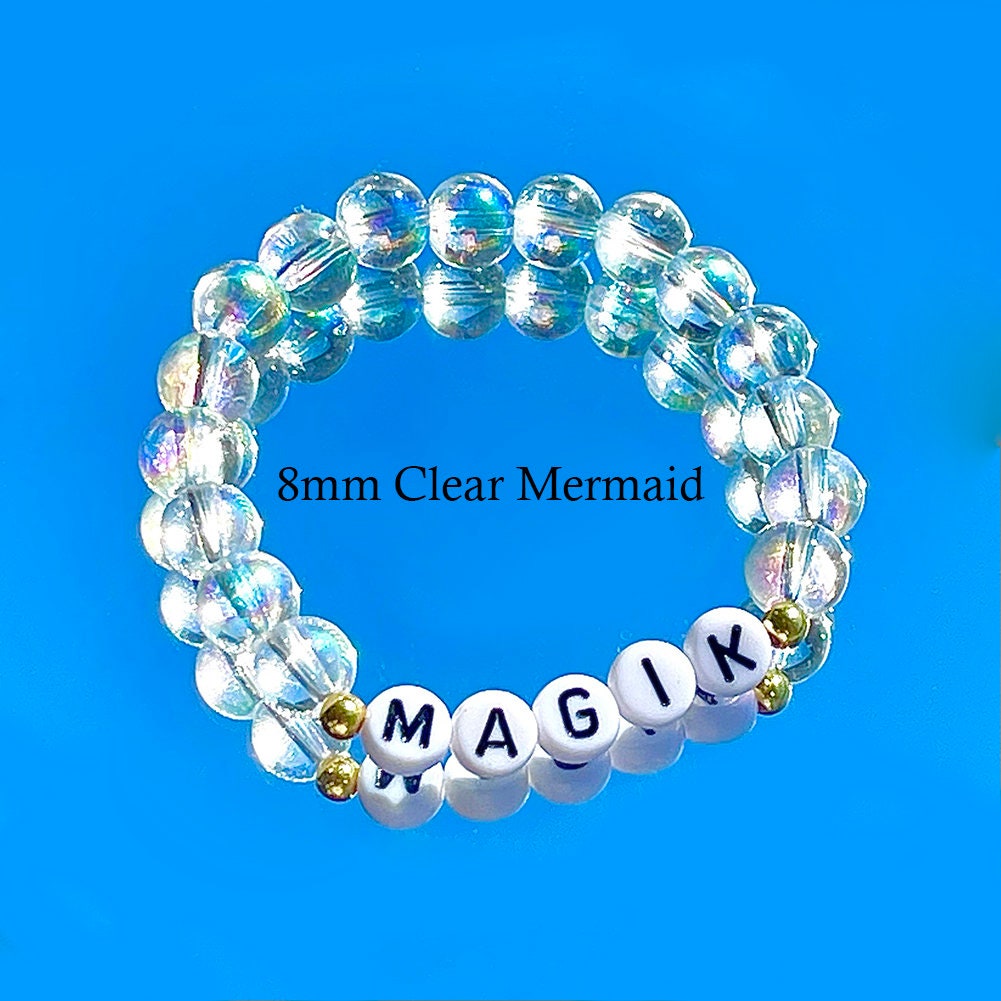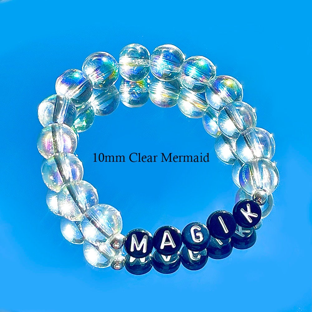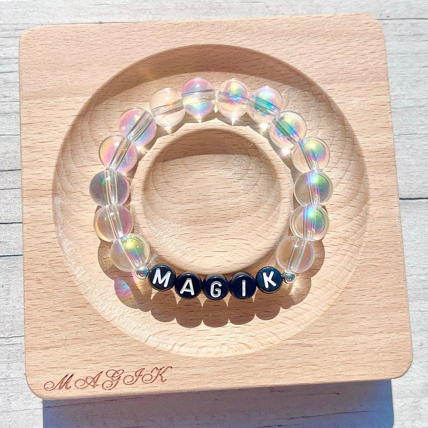 Magik Custom Name Glass Bead Beaded Soap Bubbles Mermaid Holographic Aura Personalized Mama Bracelet