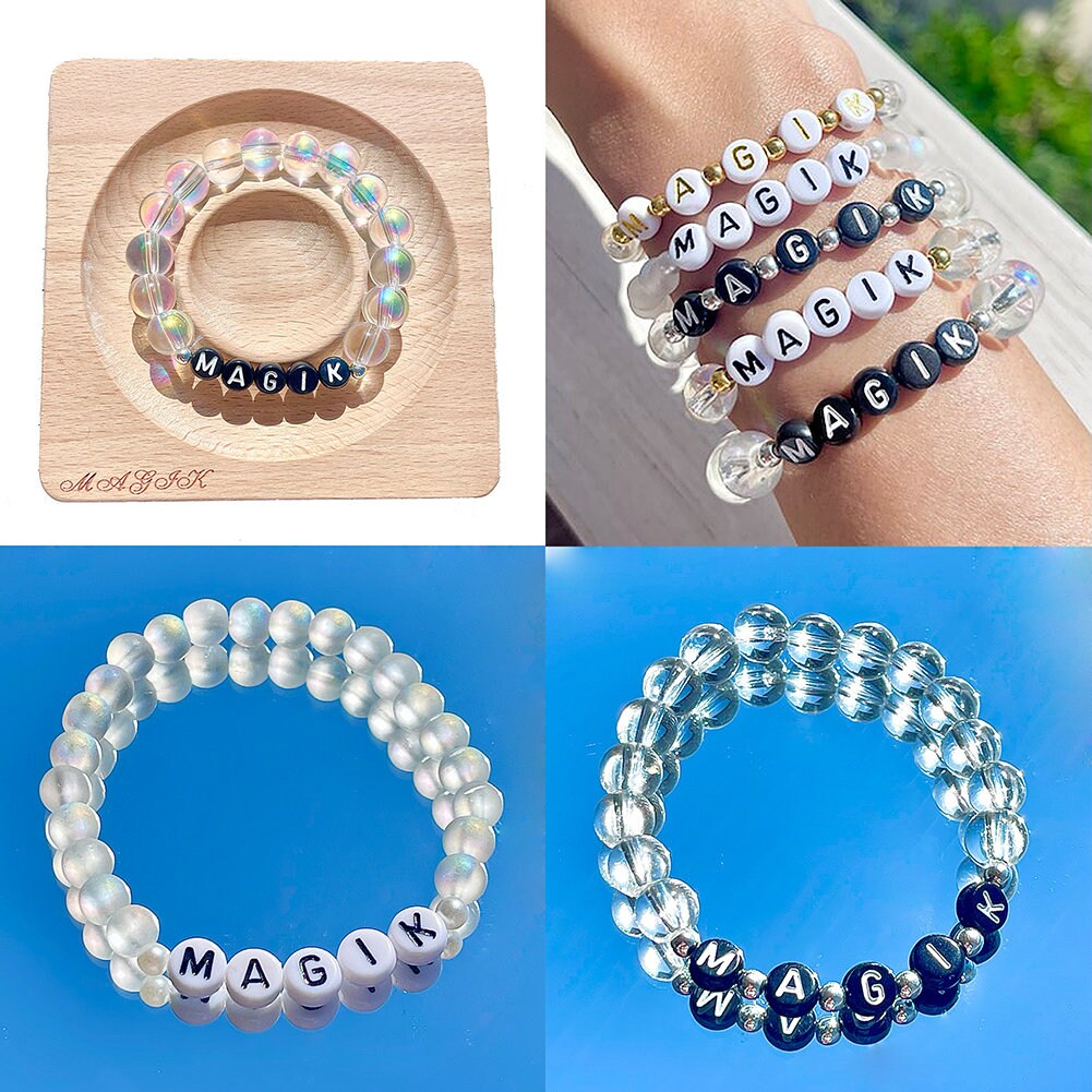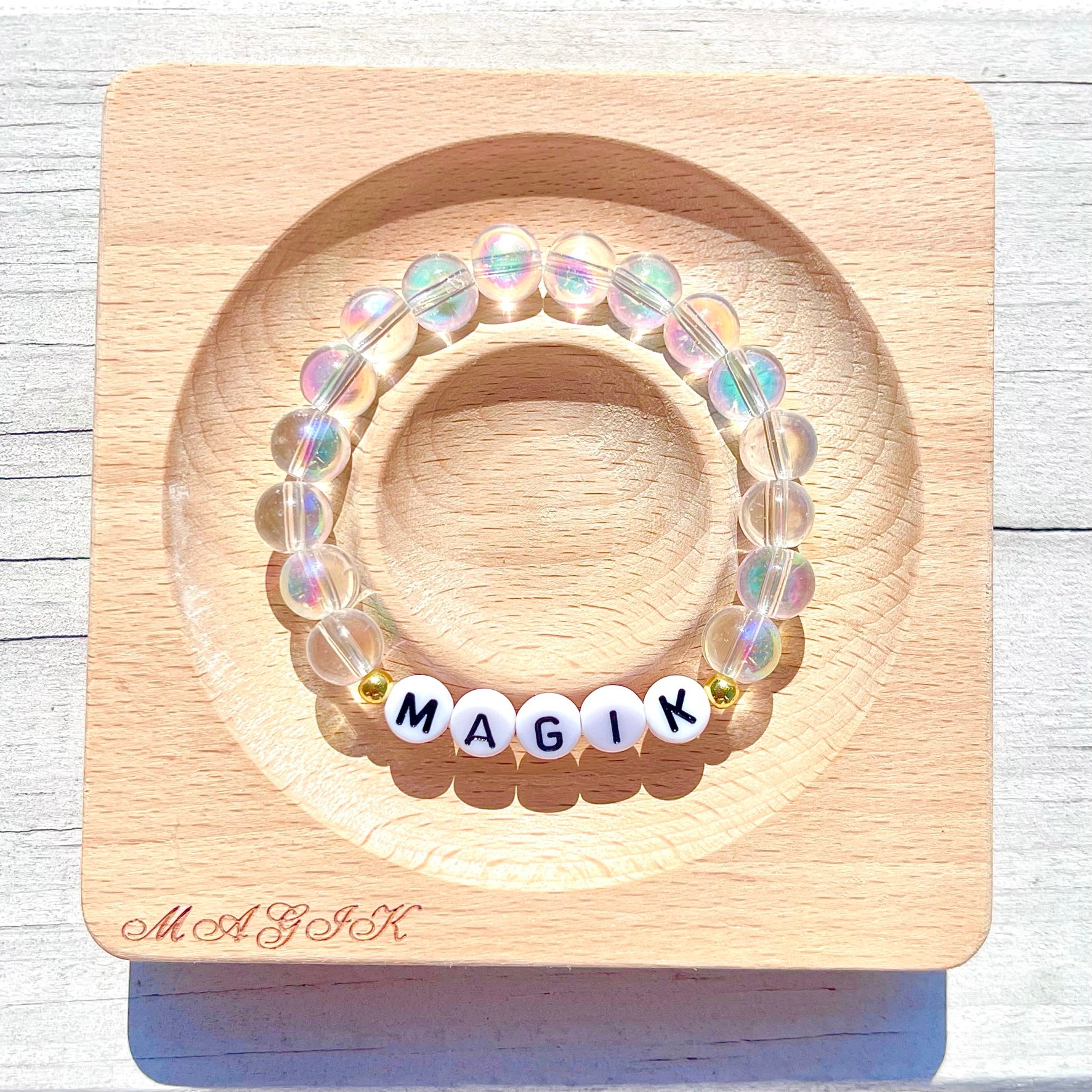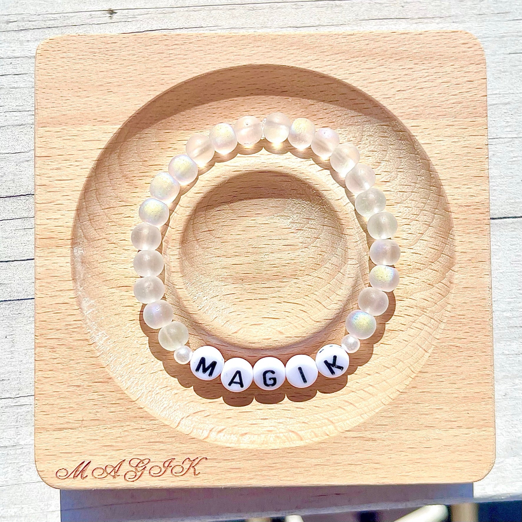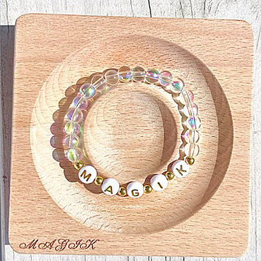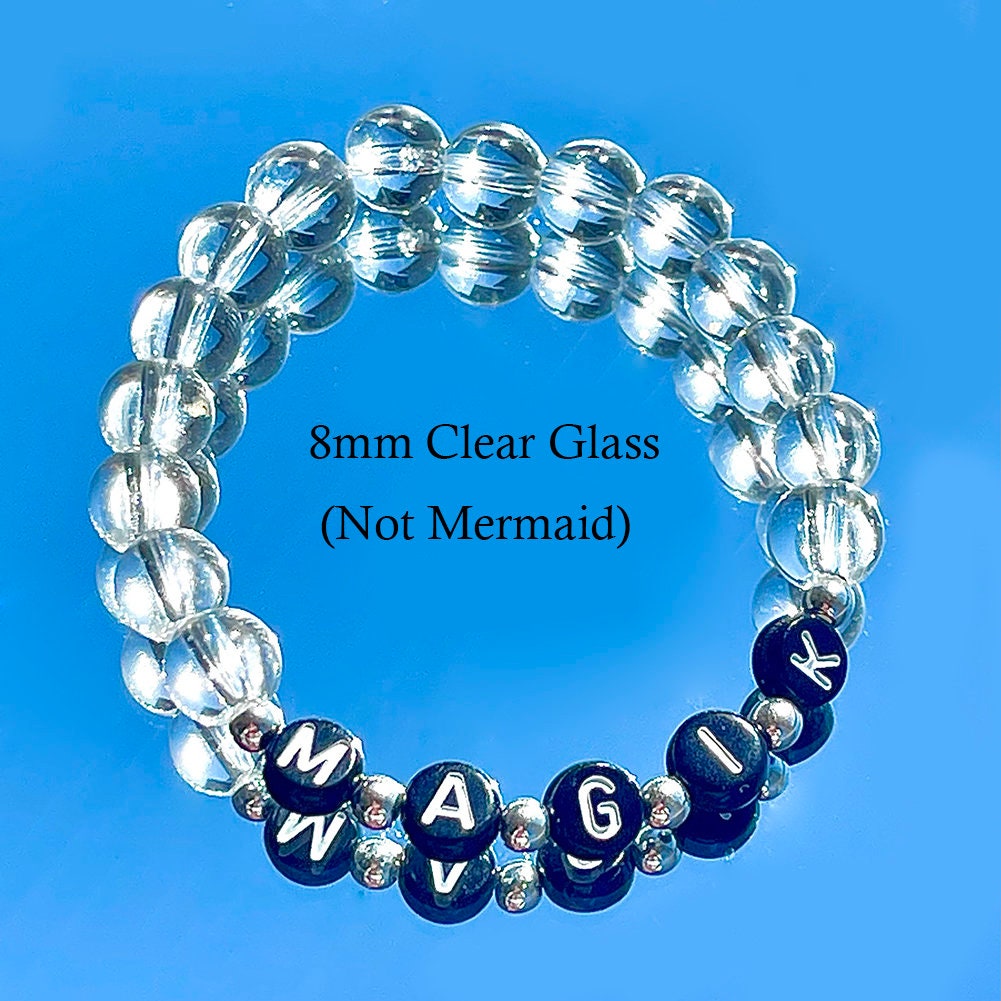 Magik Custom Name Glass Bead Beaded Soap Bubbles Mermaid Holographic Aura Personalized Mama Bracelet