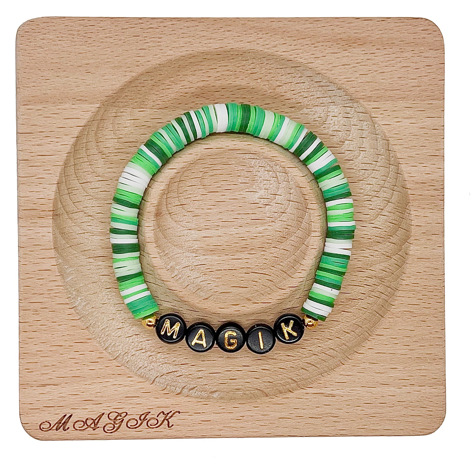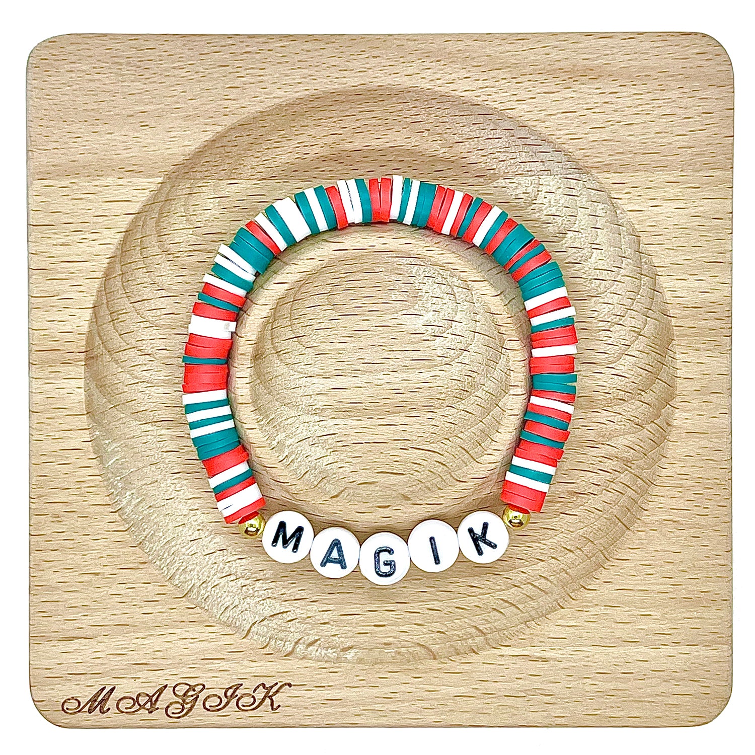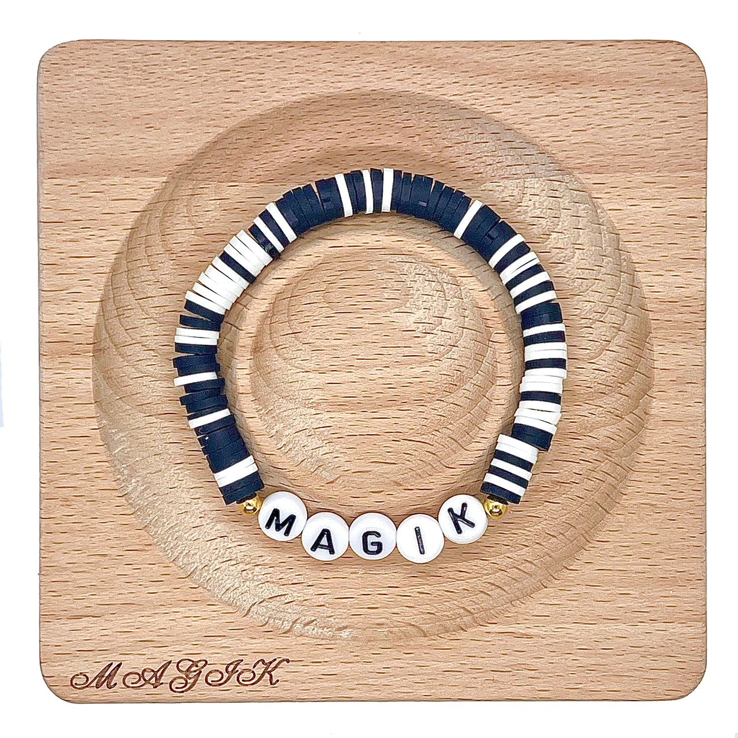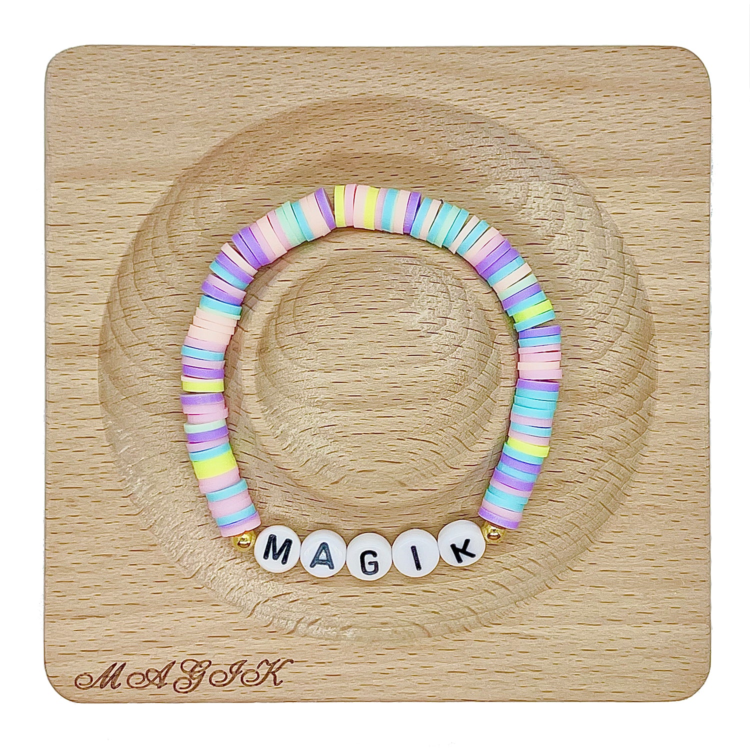 Magik Custom Name Heishi Bead Bracelet Personalized Mama Bracelet Heishi Disc Stack Beaded Bracelet for Women Men Boys Girls…