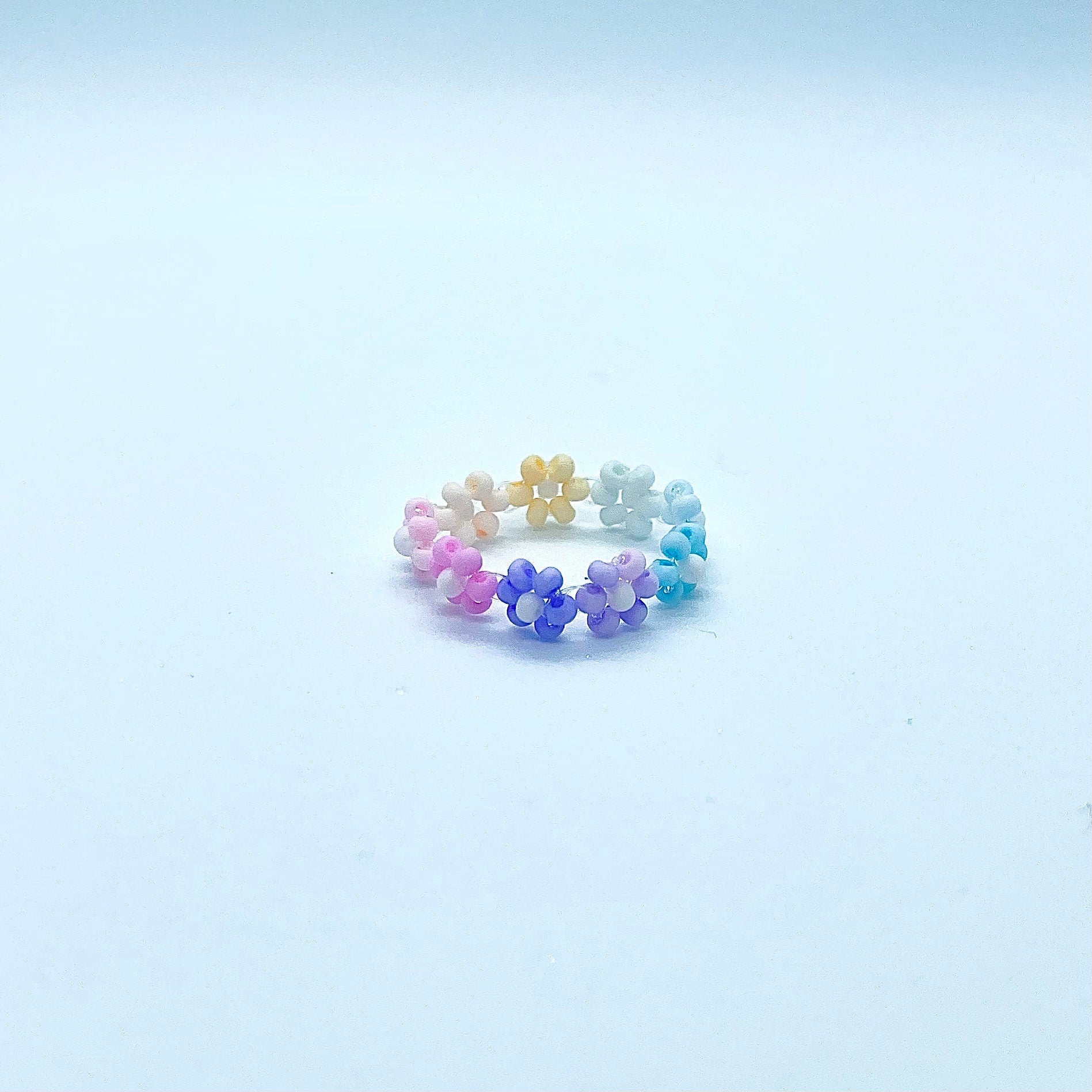 Please also note that the ring fit can differ slightly based on the flowers made with ~2mm beads, so the sizes are approximate.