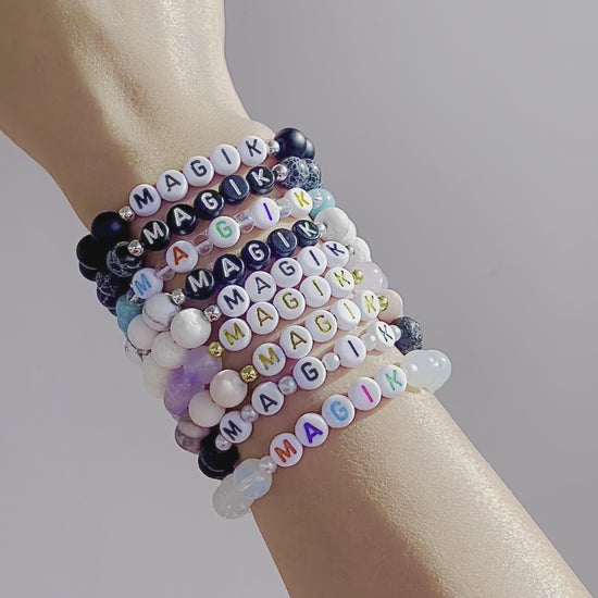 Magik Personalize Custom Handmade Name Bracelet Mama Bracelet Bead Beaded Stretch Energy Stone Yoga Agage Howlite Crystal Holiday Gift