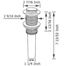 - DIMENSIONS: Overall length from the top of popup cap to the end of tailpiece: 8.46". Diameter at Top: 1.5". Flange Diameter: 2.4". Diameter at threaded pipe: 1.6". Diameter at tailpiece connection: 1.25".