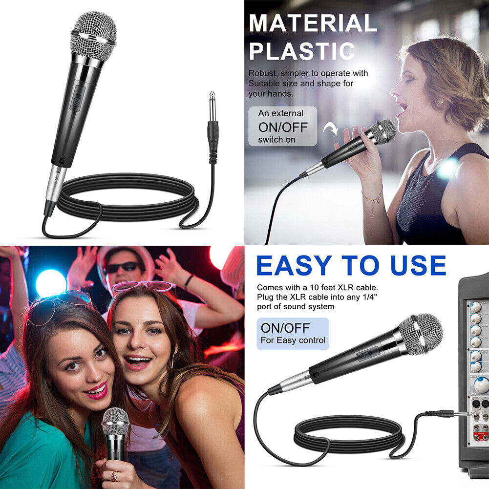 US 1~2 Pack 10Ft Wired Handheld Dynamic Microphone 1/4" Mic Party Speech Karaoke