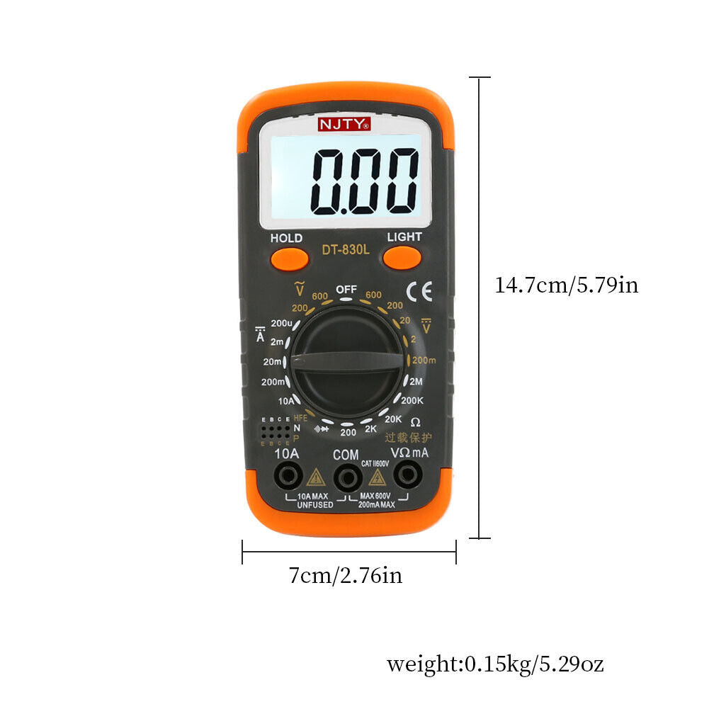 USA Seller, Ship Fast! Features: This digital capacitance meter is built in with high accuracy chip and high speed processor, features 6000 counts and 10 measuring ranges from 600pF to 100mF. Made of selected ABS material, the housing is wear resistant and with great durability. Compact size, easy to hold and operate. Large LCD screen with backlight display, data hold function and zero function, making it easy and clear to read even in dark environments. The kit also contains 2 crocodile clips and 2 fuses (0.2A). Powered by 2 AA batteries (not included), easy to install or replace batteries. Foldable bracket makes it take up less space and easy to be placed on the desktop; and also makes it convenient to carry outside. Note: Size and color may be slight different because of manual measurement and different light conditions, please in kind prevail. Thank you. Specifications: Color: Black + Orange Material: ABS Count: 6000 Counts Screen: LCD with Backlight Power Supply: 2 * AA Battery (Not Included) Working Environment: 0~40℃, <85%RH Storage Environment: -10~50℃, <85%RH Item Size: 145 * 70 * 35mm / 5.71 * 2.76 * 1.38in Item Weight: 149g / 5.25oz Package Size: 16.2 * 11 * 4cm / 6.28 * 4.33 * 1.57in Package Weight: 217g / 7.64oz Range, Resolution, Accuracy: 600pF, 0.1pF, ±2% Reading +10 6nF, 0.001nF, ±0.6% Reading +10 60nF, 0.01nF, ±0.6% Reading +10 600nF, 0.1nF, ±0.6% Reading +10 6μF, 0.001μF, ±0.6% Reading +10 60μF, 0.01μF, ±0.6% Reading +10 600μF, 0.1μF, ±0.6% Reading +10 6000μF, 0.001mF, ±2% Reading +10 60mF, 0.01mF, ±4% Reading +10 100mF, 0.1mF, ±5% Reading +10 |