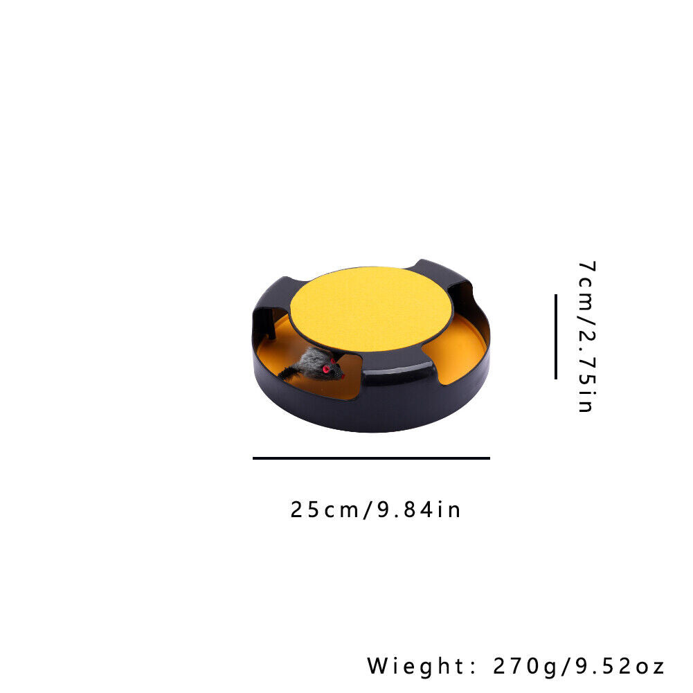 Two In One Cat Spinner Toy: Top felt pad which is a special wear-resistant material can be used as a cat scratcher.   Mouse will rotate quickly when cats paw touching it, The more the cat wants to catch the mouse, the harder it is to catch it, and the fun is endless.