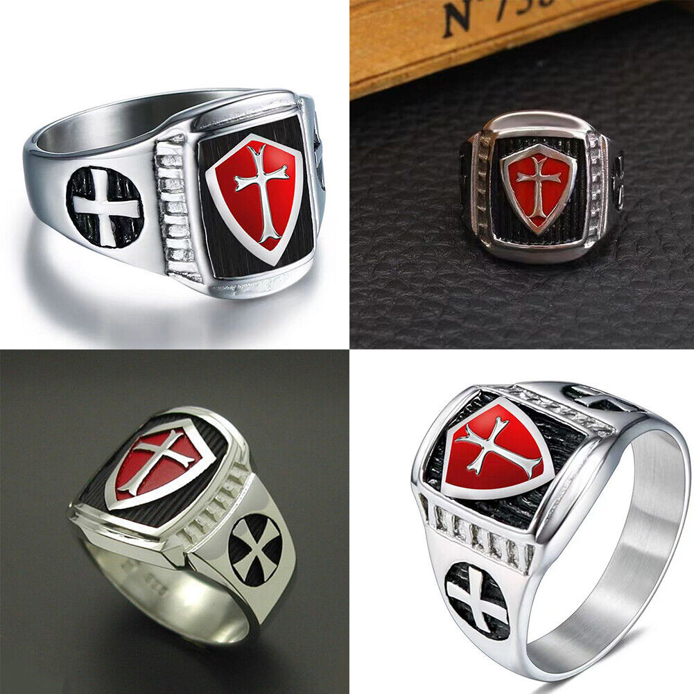 US 1-2 Pack Mens Shield Cross Knights Templar Ring Silver Stainless Steel