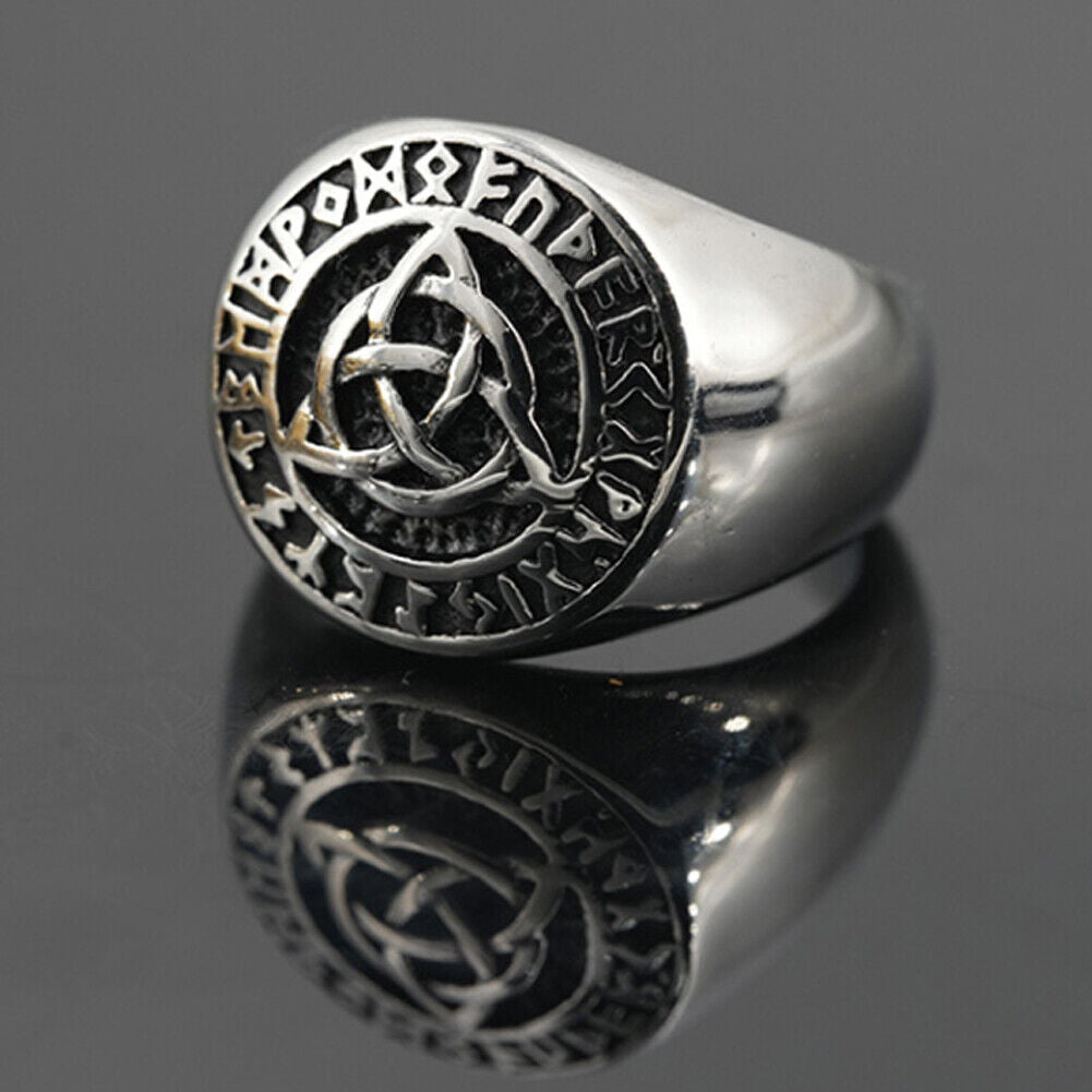 US 1-2 Pack Mens Viking Rune Celtic Irish Trinity Knot Ring Stainless Steel