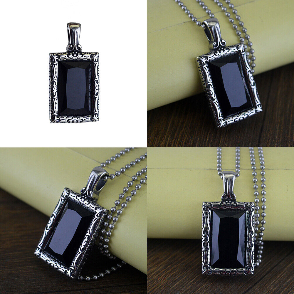 US 1-2 Pc Stainless Steel Mens Hip Hop Black Obsidian Stone Pendant Necklace Men