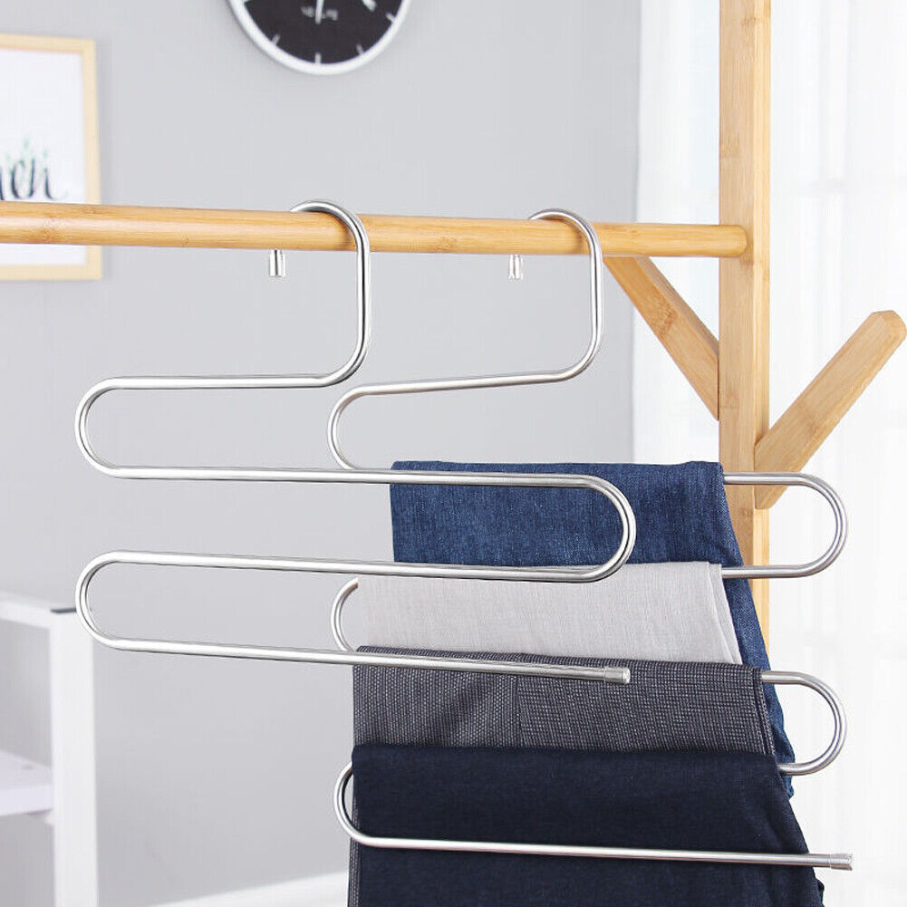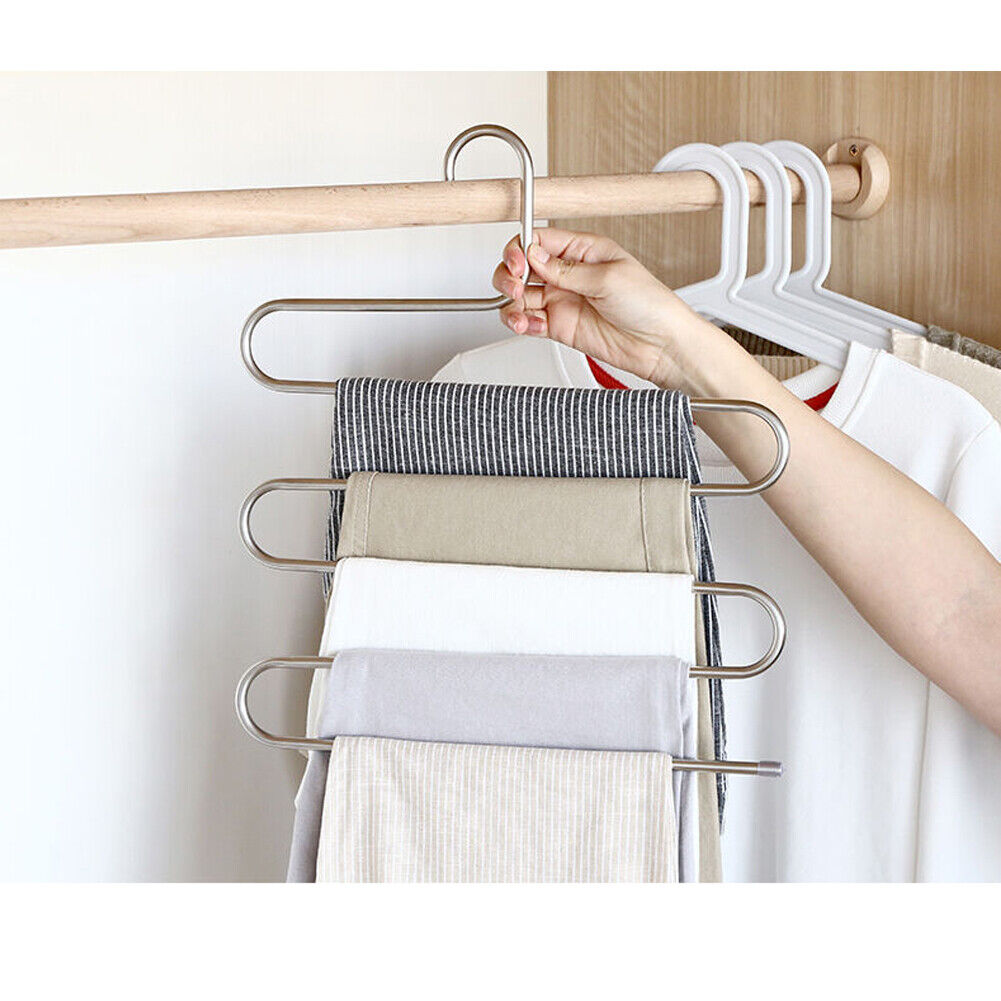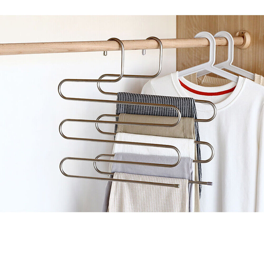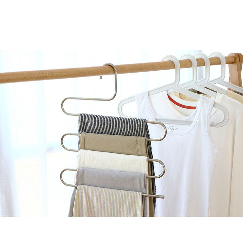US 2-4 Pcs Trouser Pants Hanger Non-Slip S-Shape 5-Layer Rack Closet Space Saver