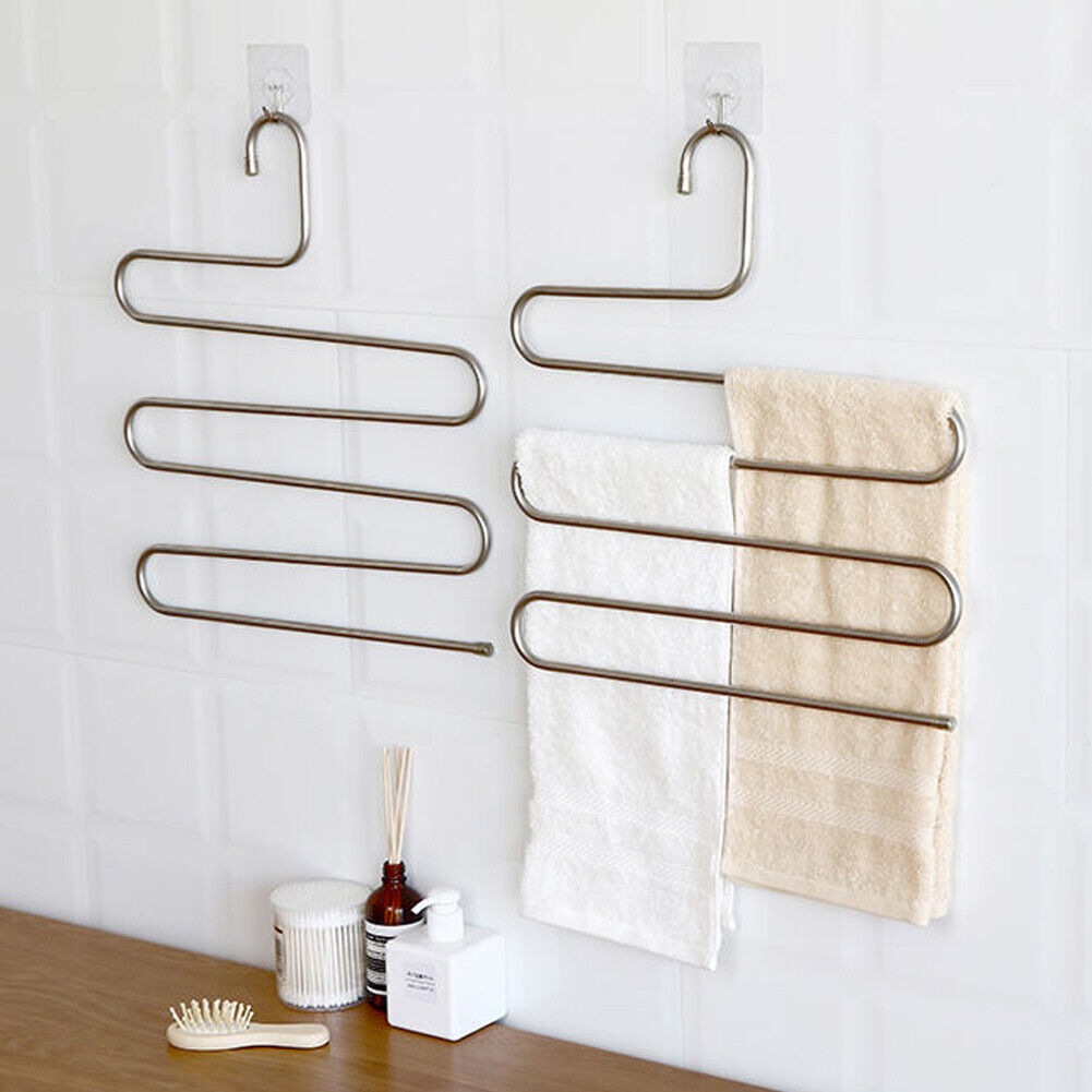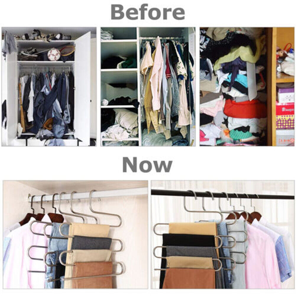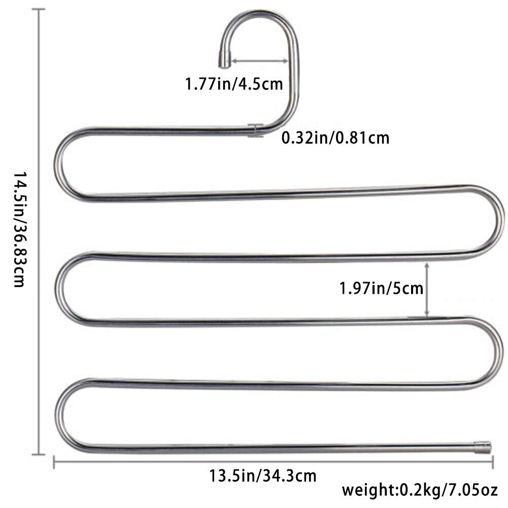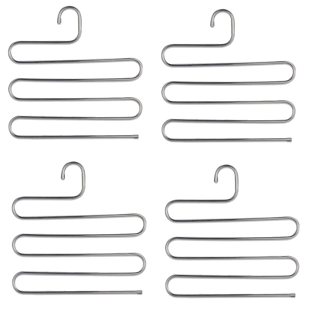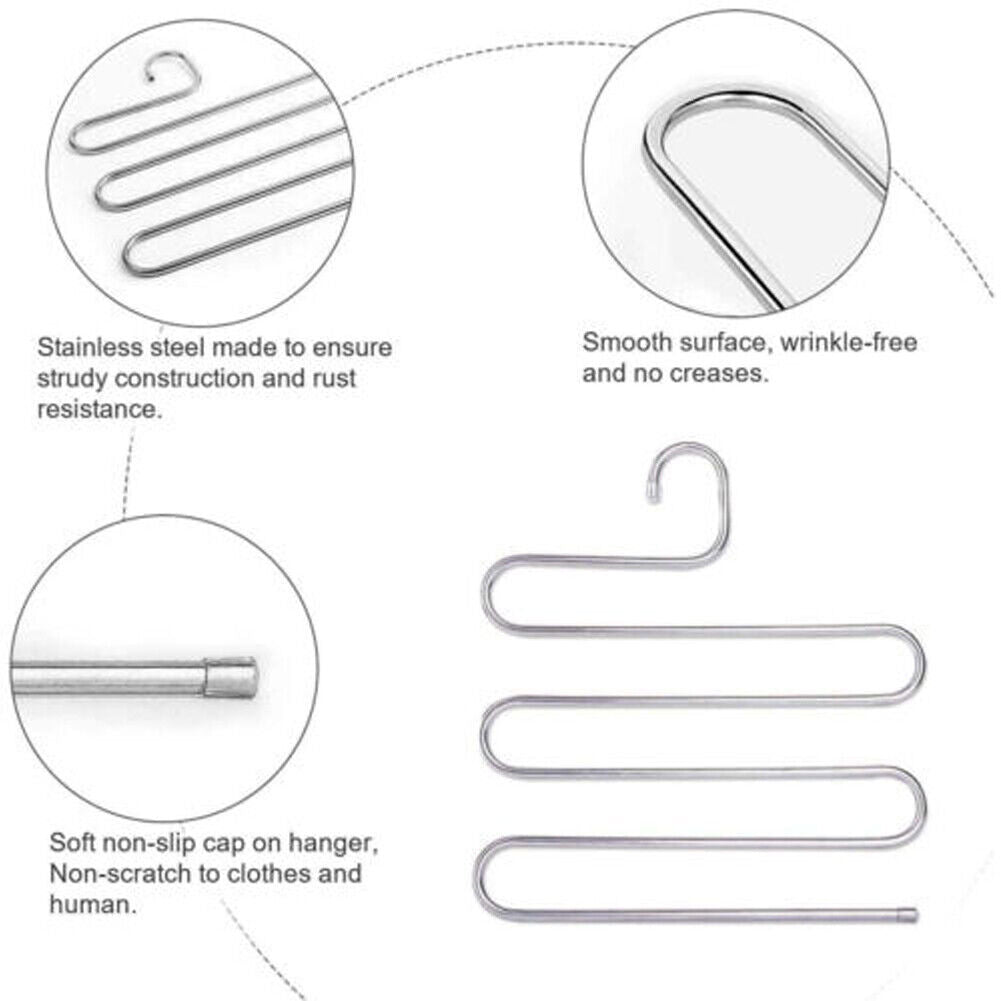 US 2-4 Pcs Trouser Pants Hanger Non-Slip S-Shape 5-Layer Rack Closet Space Saver