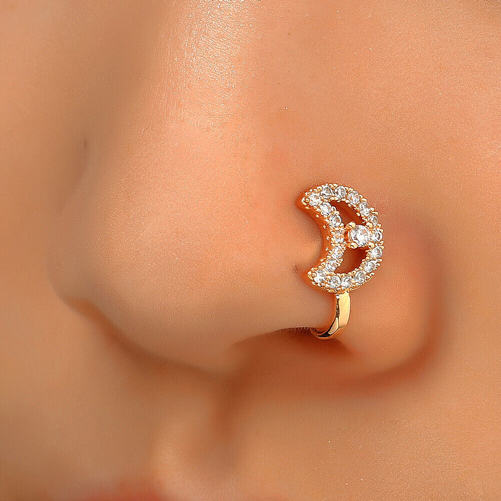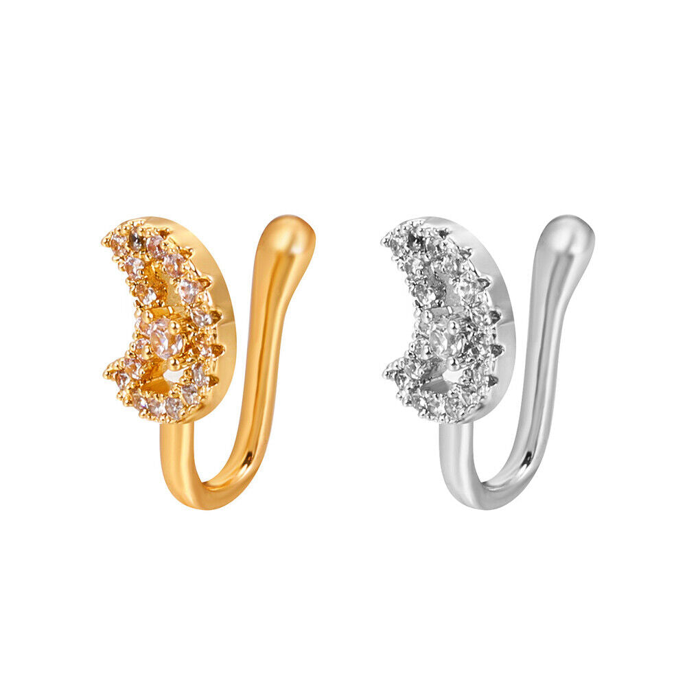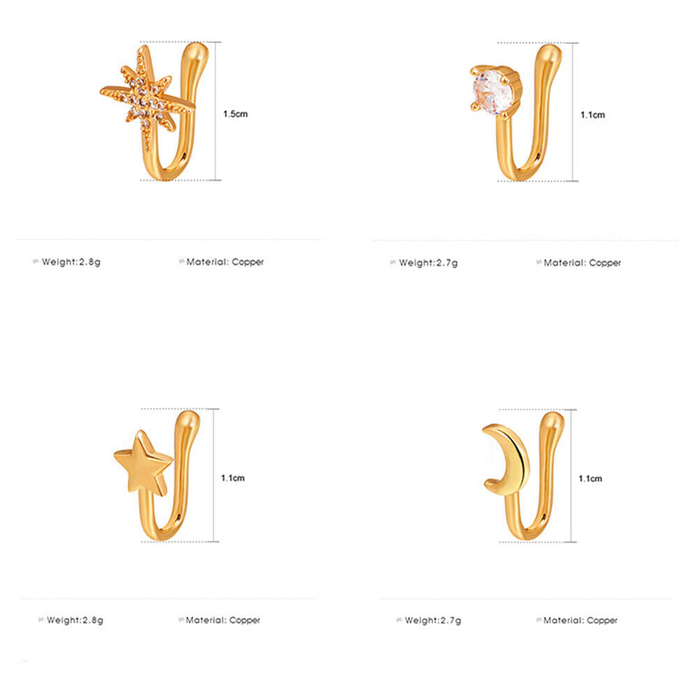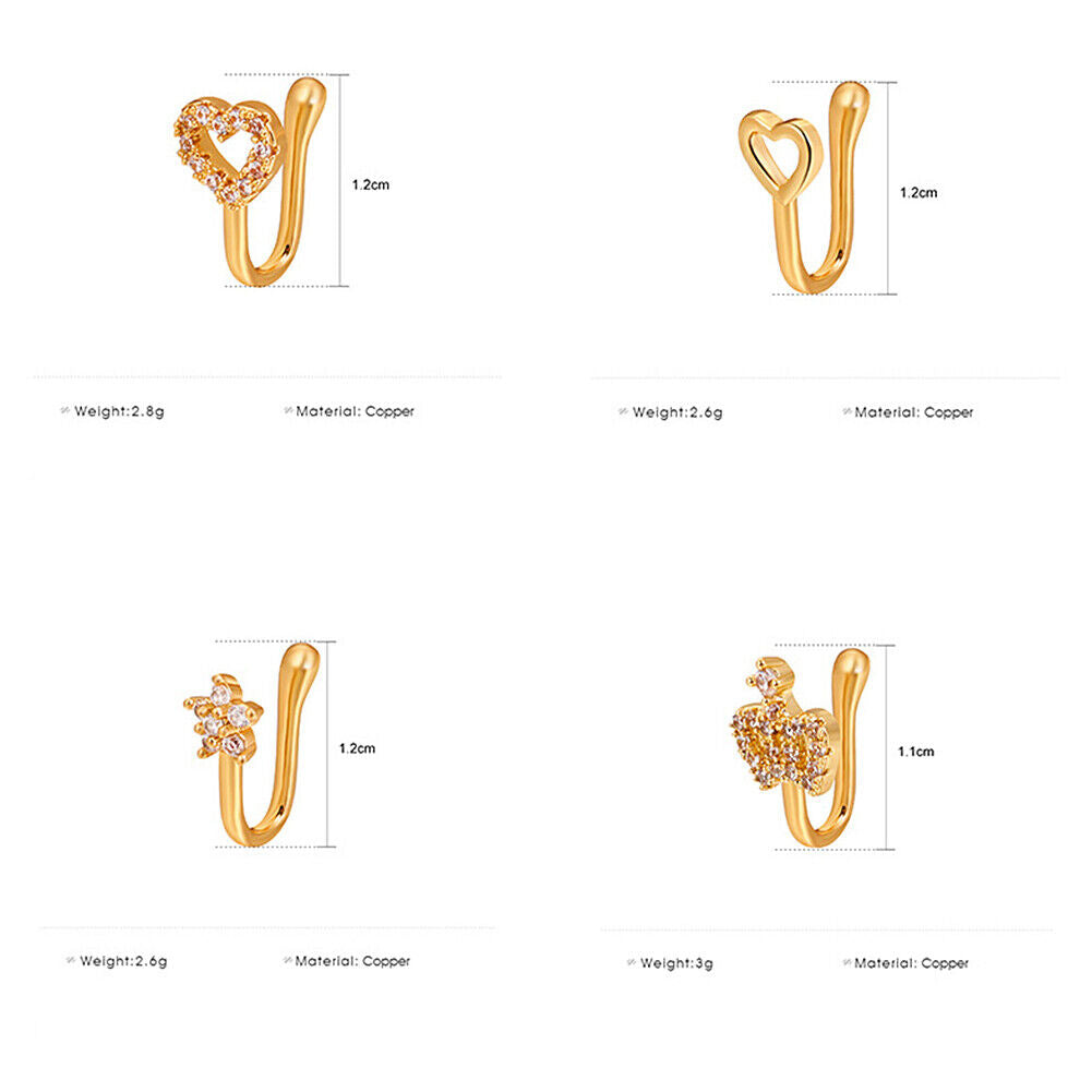 US 2 Pcs Star Heart Crown Nose Ring Copper Durable Fake Non-Pierced Nose Clip