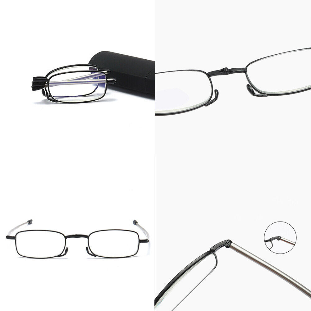US 3Pc Read Fold Metal Compact Anti-Blue Light Reading GlassesWith Carrying Case