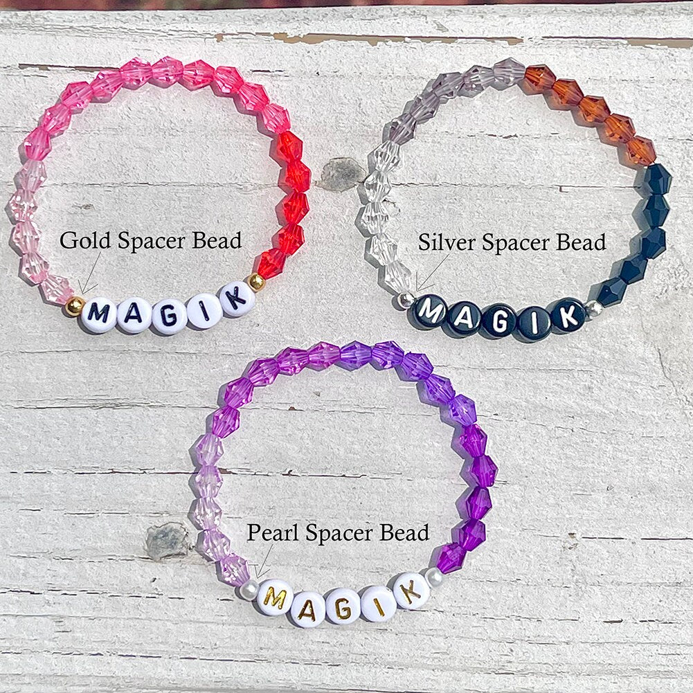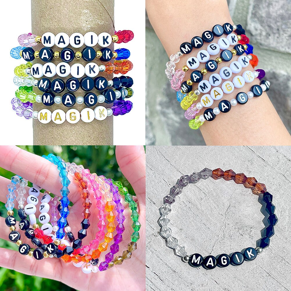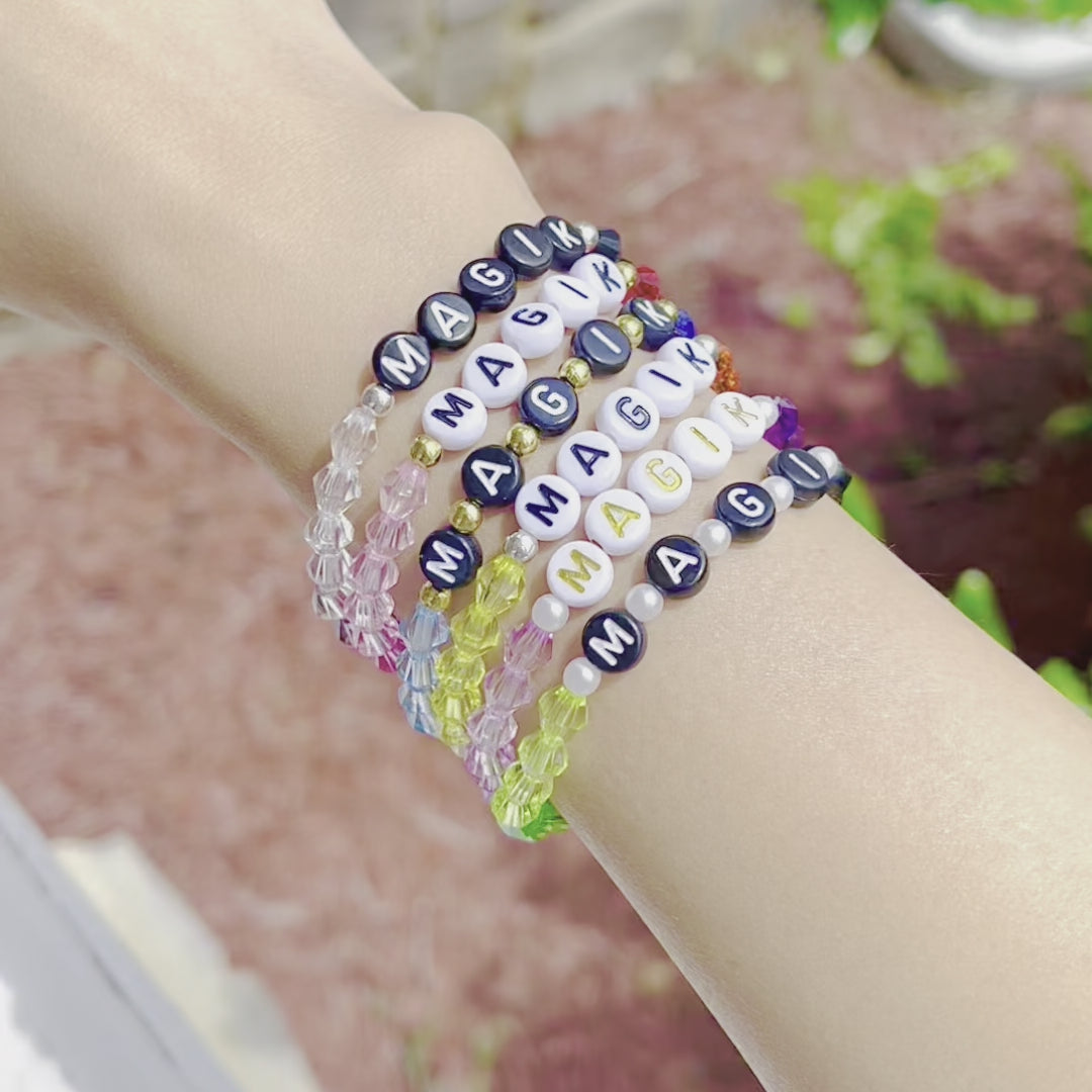 Crystal Acrylic Bead Bracelet: Crystal bicone beads are multi-faceted and evenly cut, featuring colorful appearances, adding even more inspiration and beauty to your styles and dresses, and you will look more delicate and gorgeous with these shimmering beads. Different Color Series to Choose, from warm colors to cold colors! You can now customize your bracelets with your name or title.