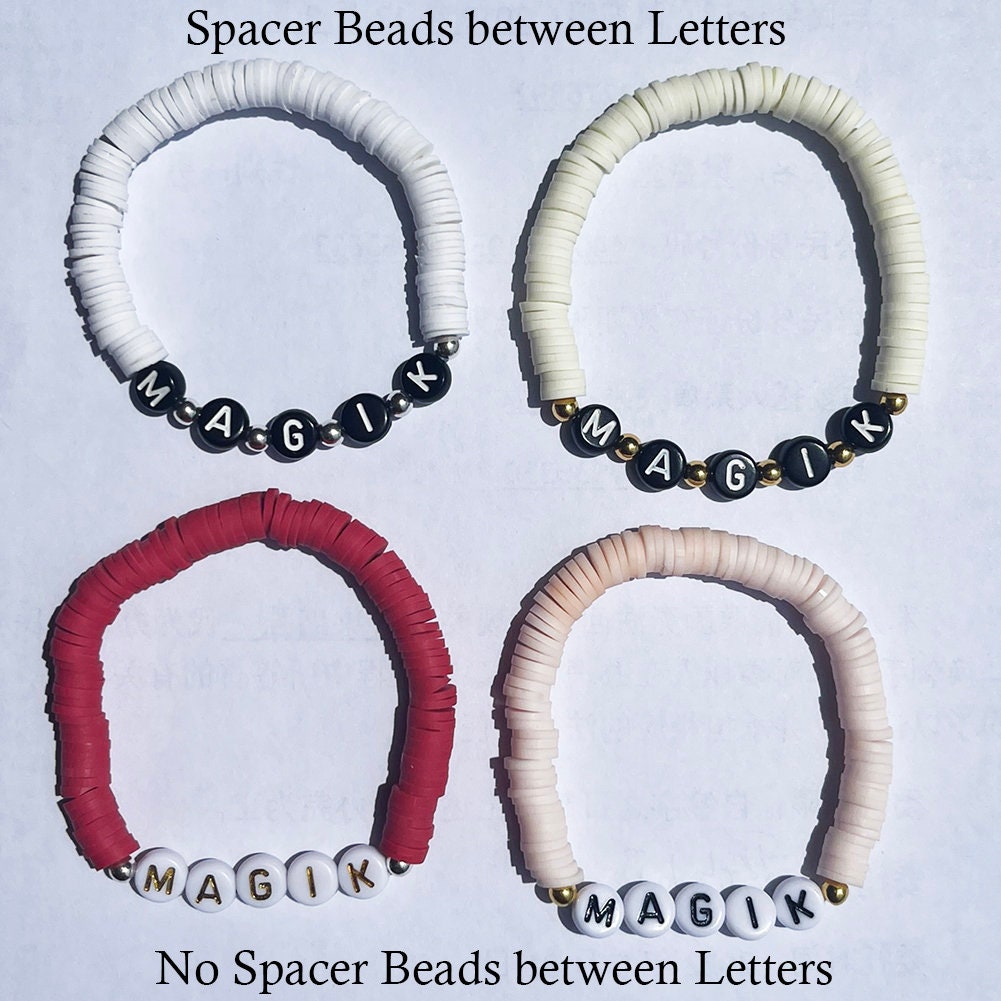 4. Spacer beads between letter beads? Yes or No. Please refer to listing pictures for difference.