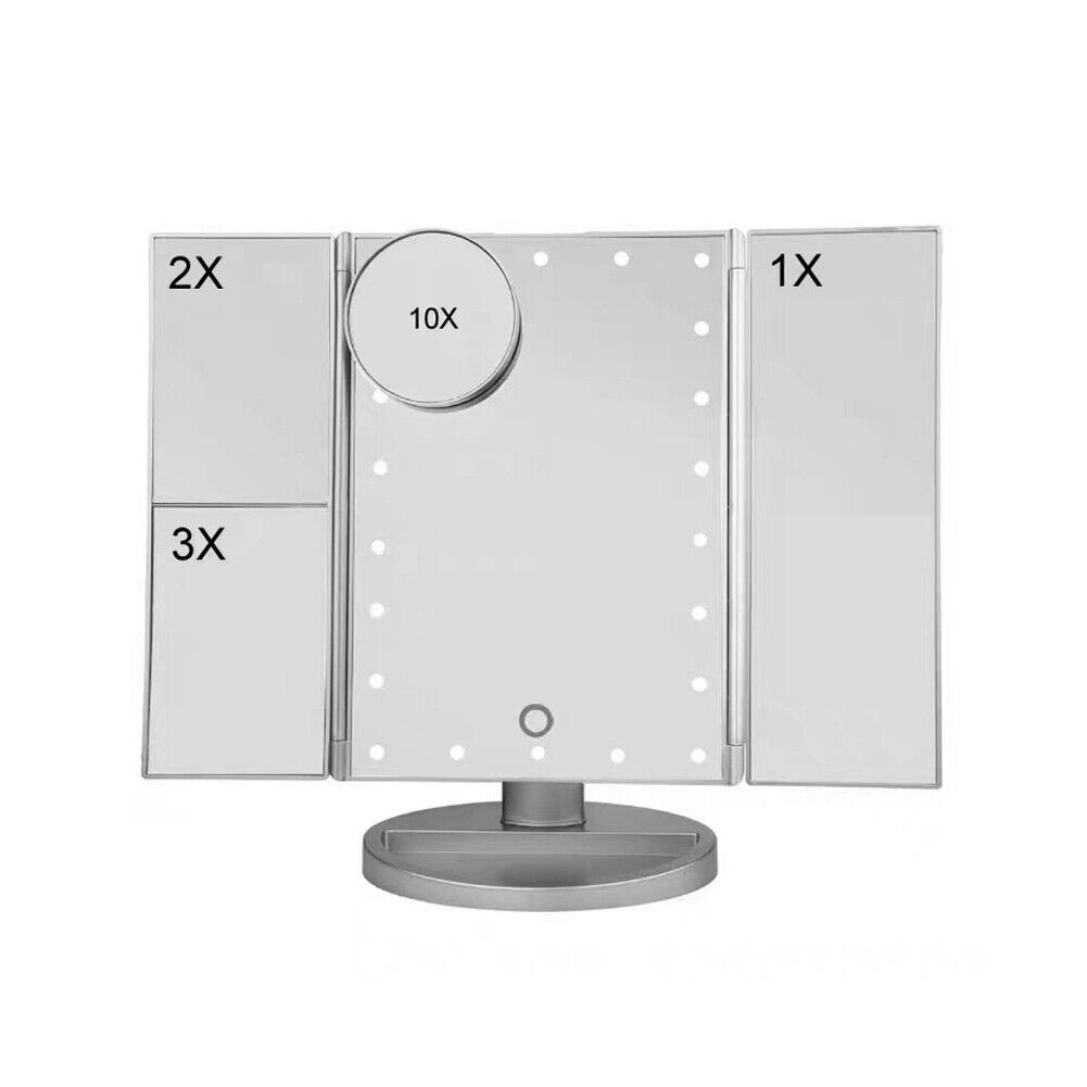US USB LED Tri-Fold 2X 3X 10X Magnifying Makeup Mirror Touch Screen Standing